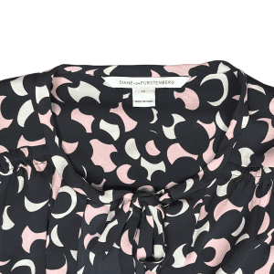 - Possui modelagem evasê, com drapeado e ajuste em corda na gola em V;