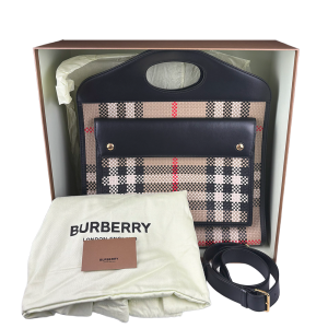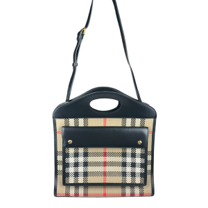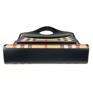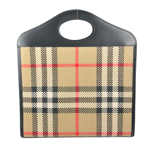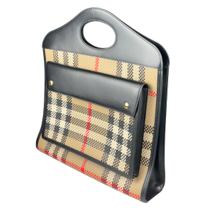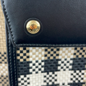 - Couro calfskin trançado na padronagem Antique Check e couro calfskin na cor preta;