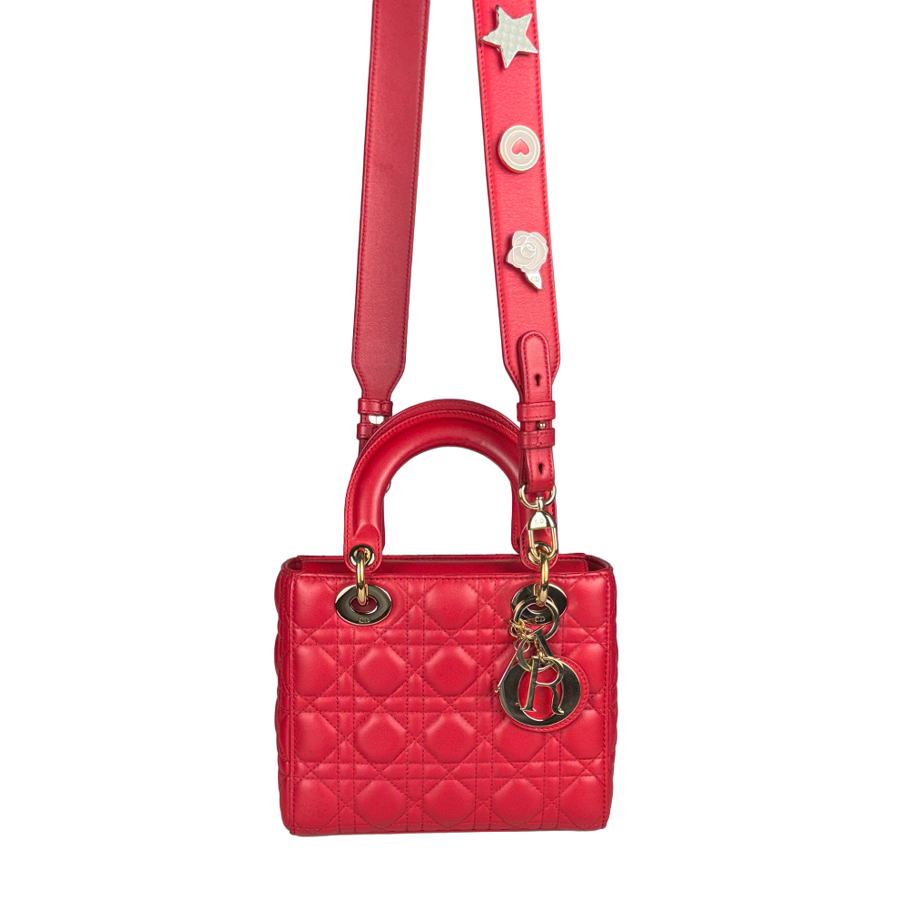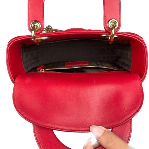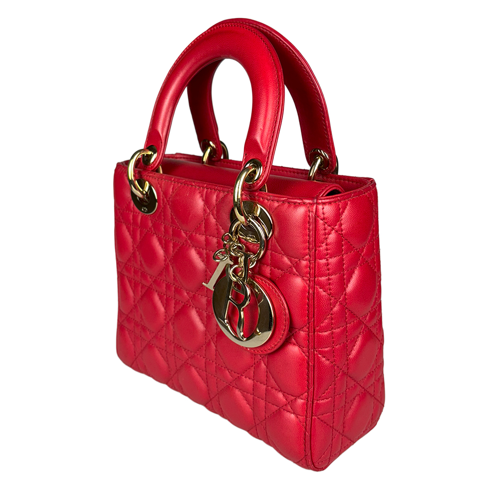 - Couro Lambskin na padronagem Cannage na cor vermelha;