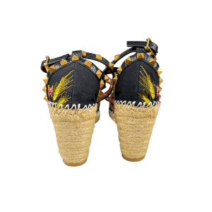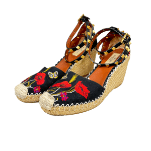 Canvas Embroidered Ankle Strap Espadrille Wedge Sandals 37
