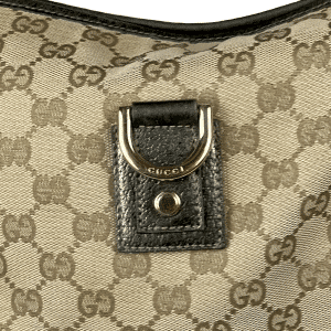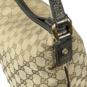 - Canvas GG Monogram e couro calfskin Pewter (metalizado) na cor marrom;