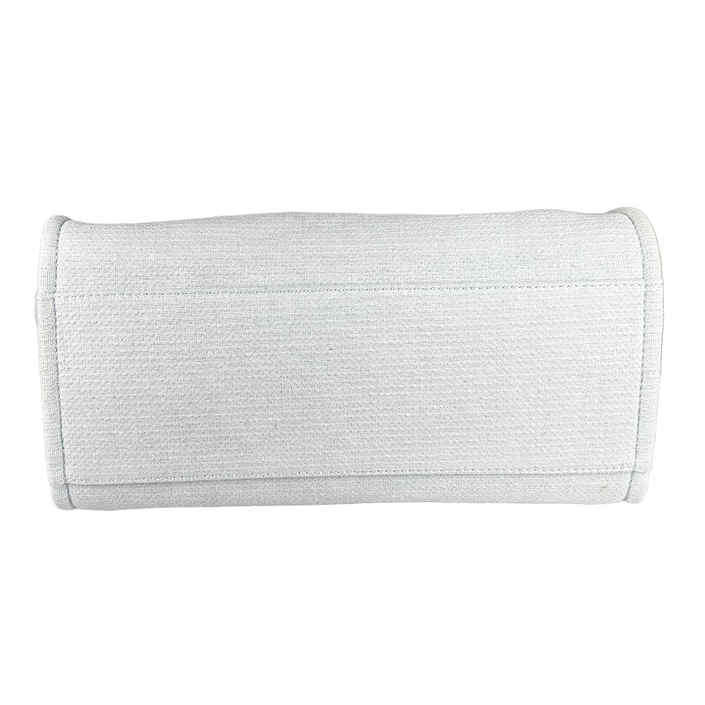 - Canvas e detalhes em couro calfskin na cor azul claro;