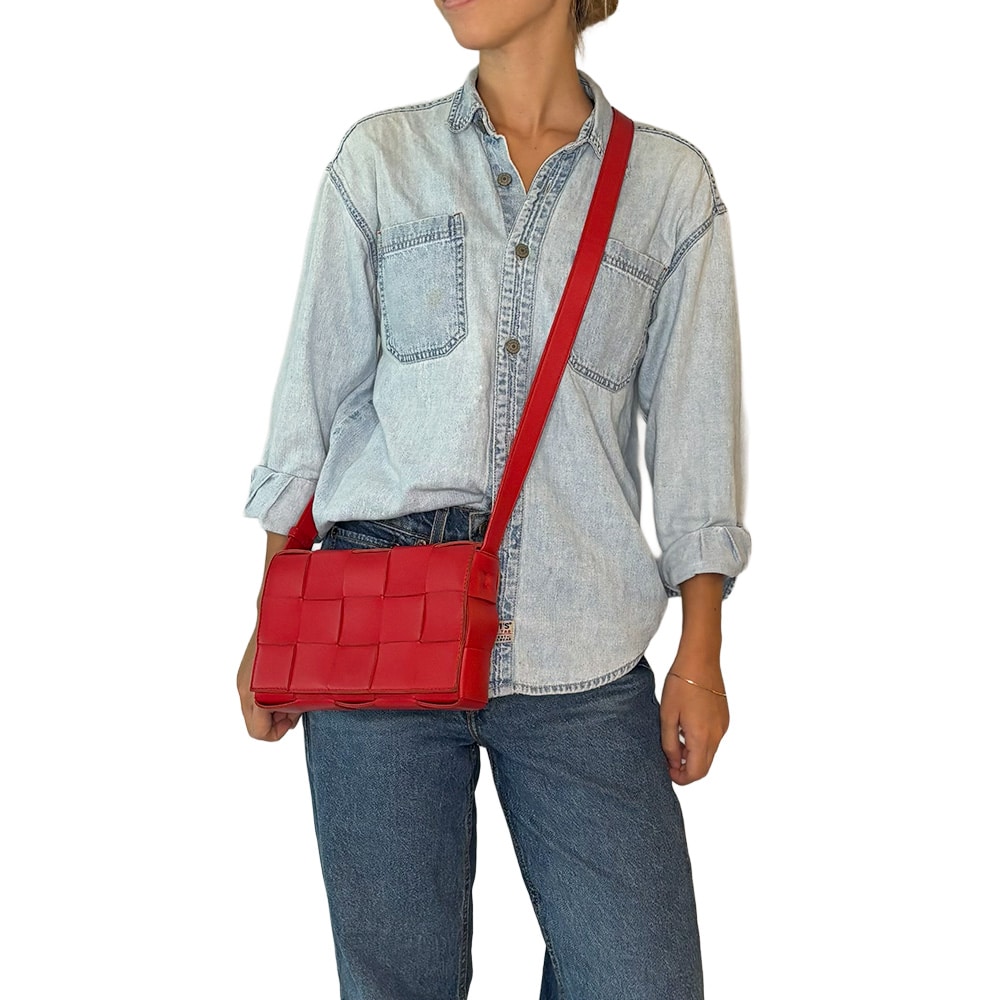 - Couro Lambskin Intreccio Redstone (vermelho);