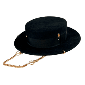 - Estilo Fedora, estruturado, com detalhes bordados e corrente removível;