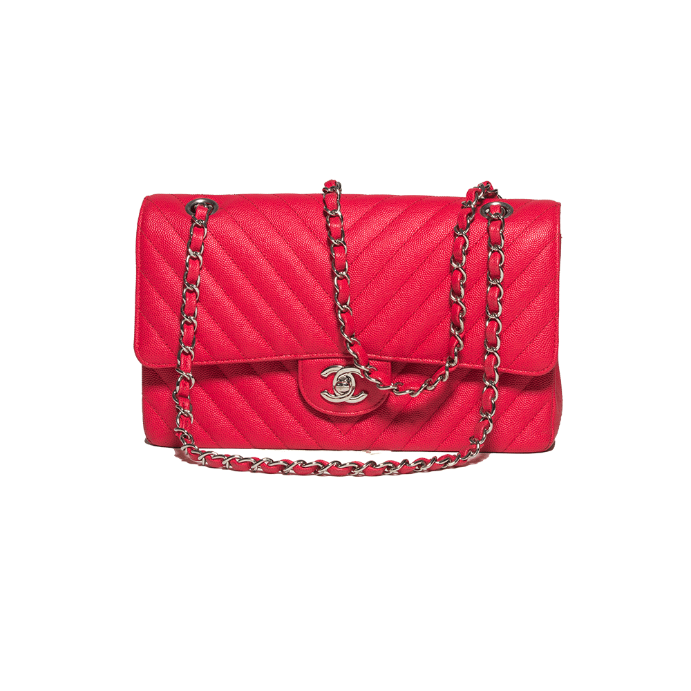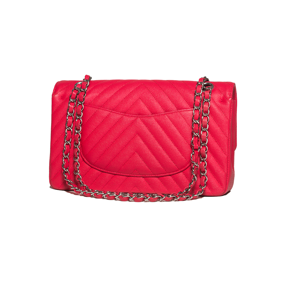 - Couro Chevron Caviar na cor rosa;