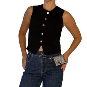 • Satin (cetim) na cor preta com aplicações “Crystal” strass;