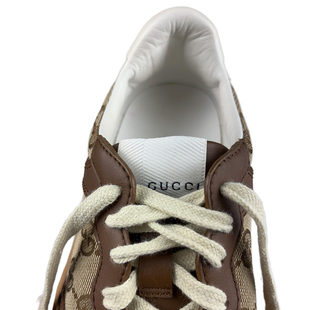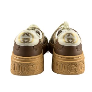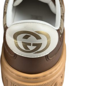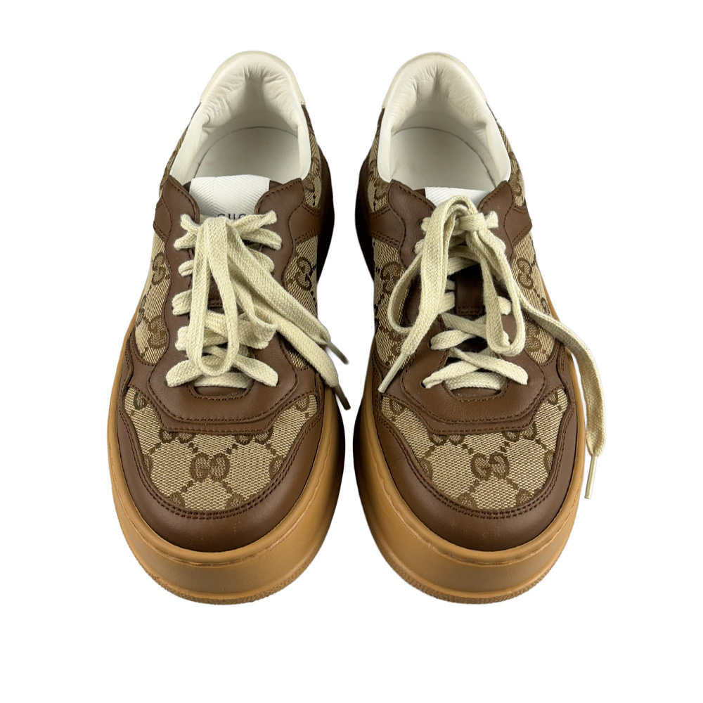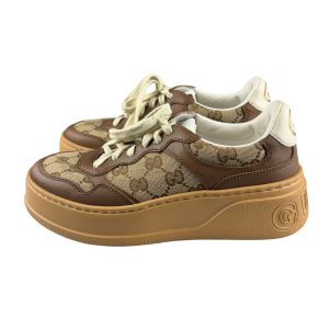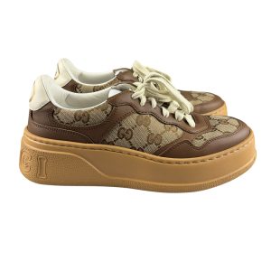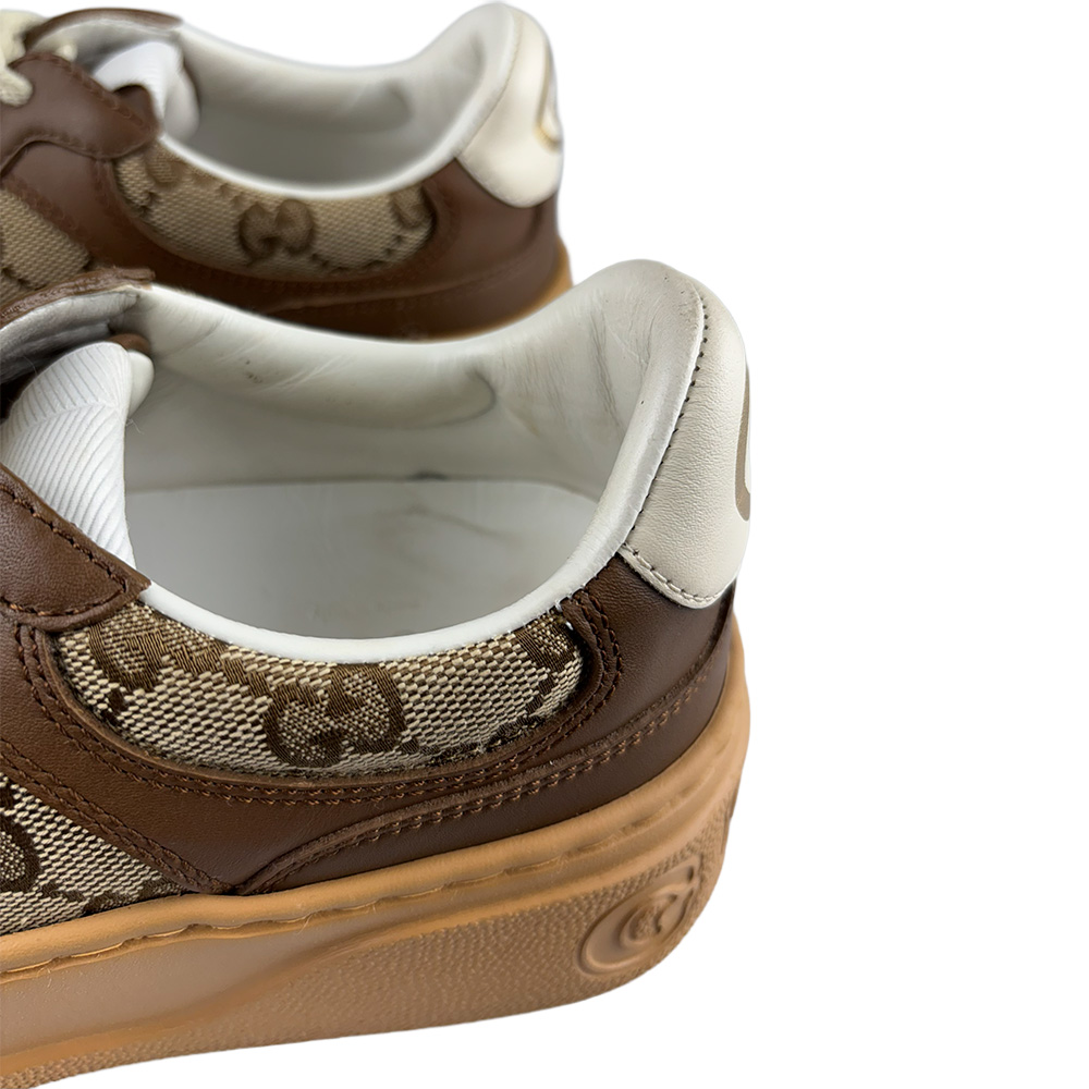 - Canvas GG Monogram e couro calfskin na cor marrom com solado em borracha;
