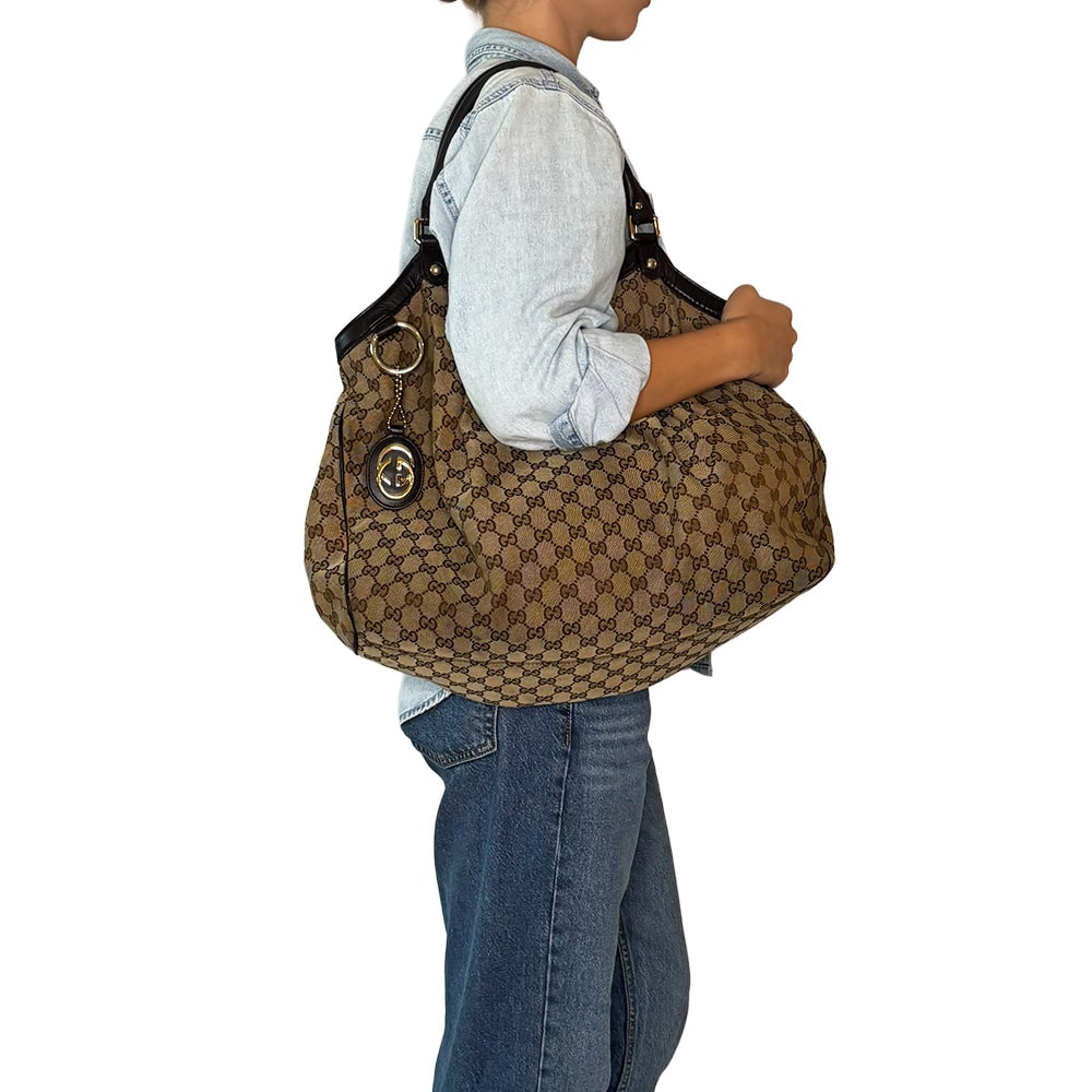 - Canvas GG Monogram e couro calfskin na cor marrom;
