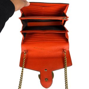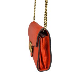 - Fechamento por flap com detalhe em GG Marmont e botão de pressão;