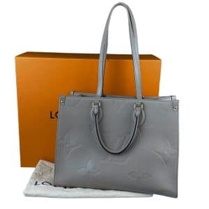 - Couro Giant Monogram Empreinte na cor Tourterelle (bege);
