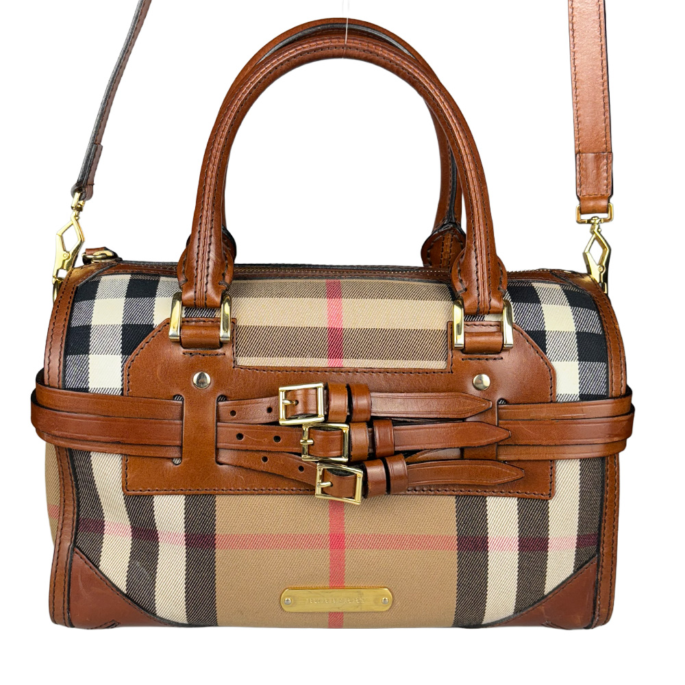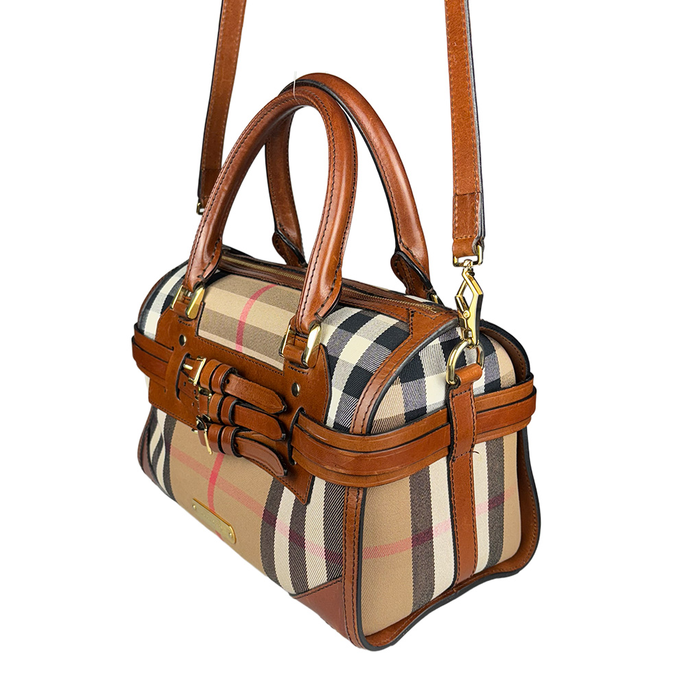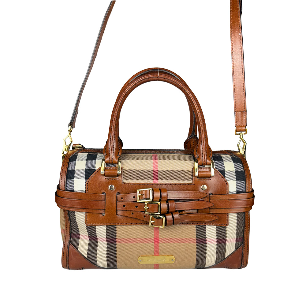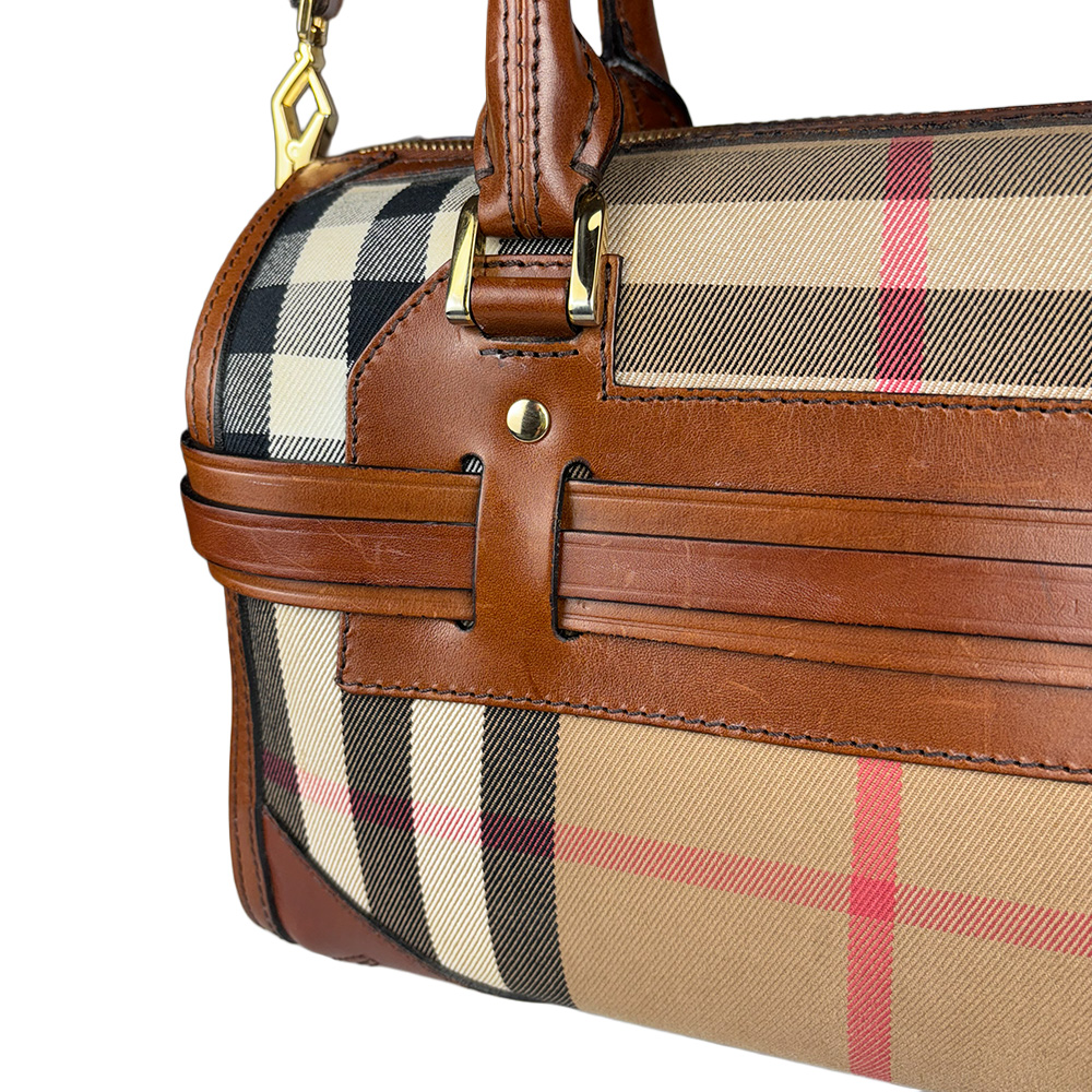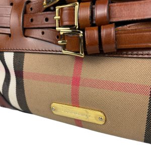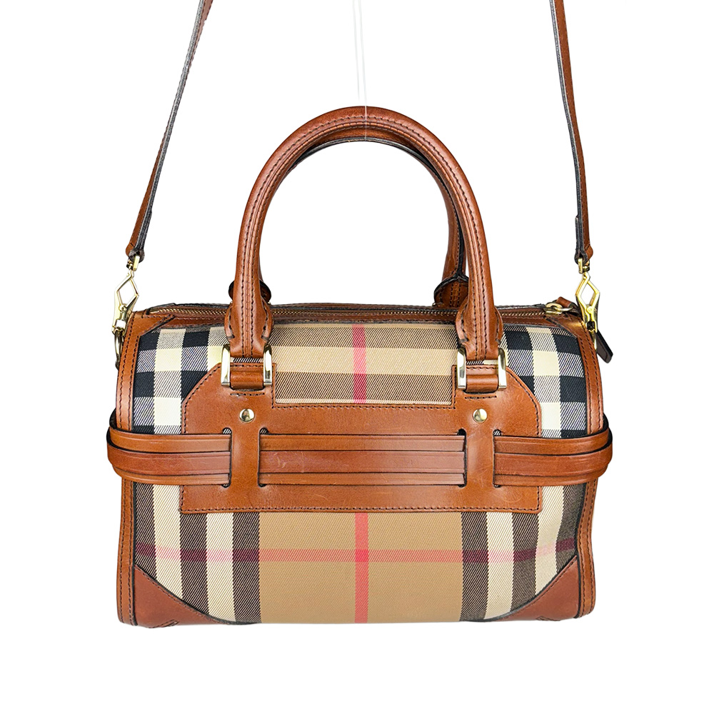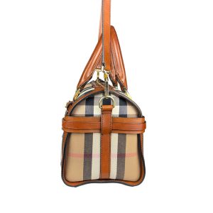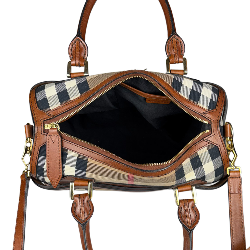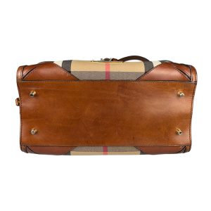 - Canvas com padronagem House Check e couro calfskin na cor marrom;