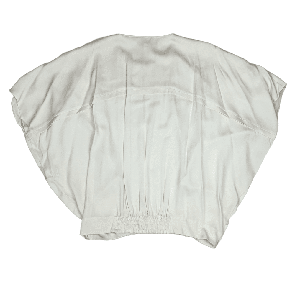 - Possui modelagem estilo morcego, com detalhe em drapeado frontal, colchete para fechamento na gola e elástico na parte de trás;