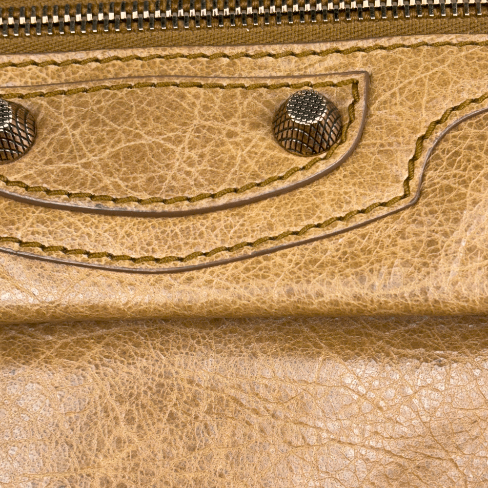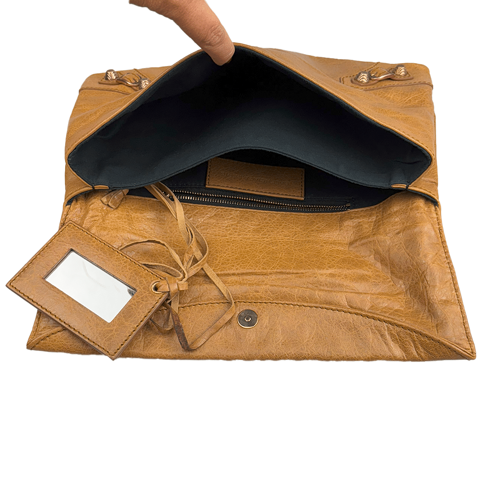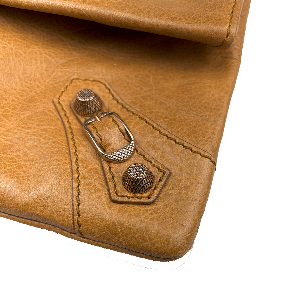- Couro Agneau na cor Kraft Brown (caramelo);