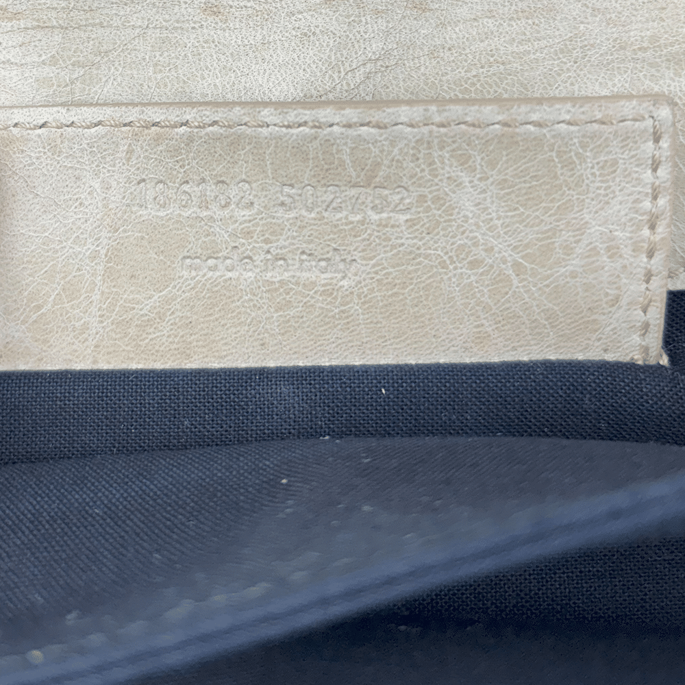 - Couro Lambskin na cor off white;