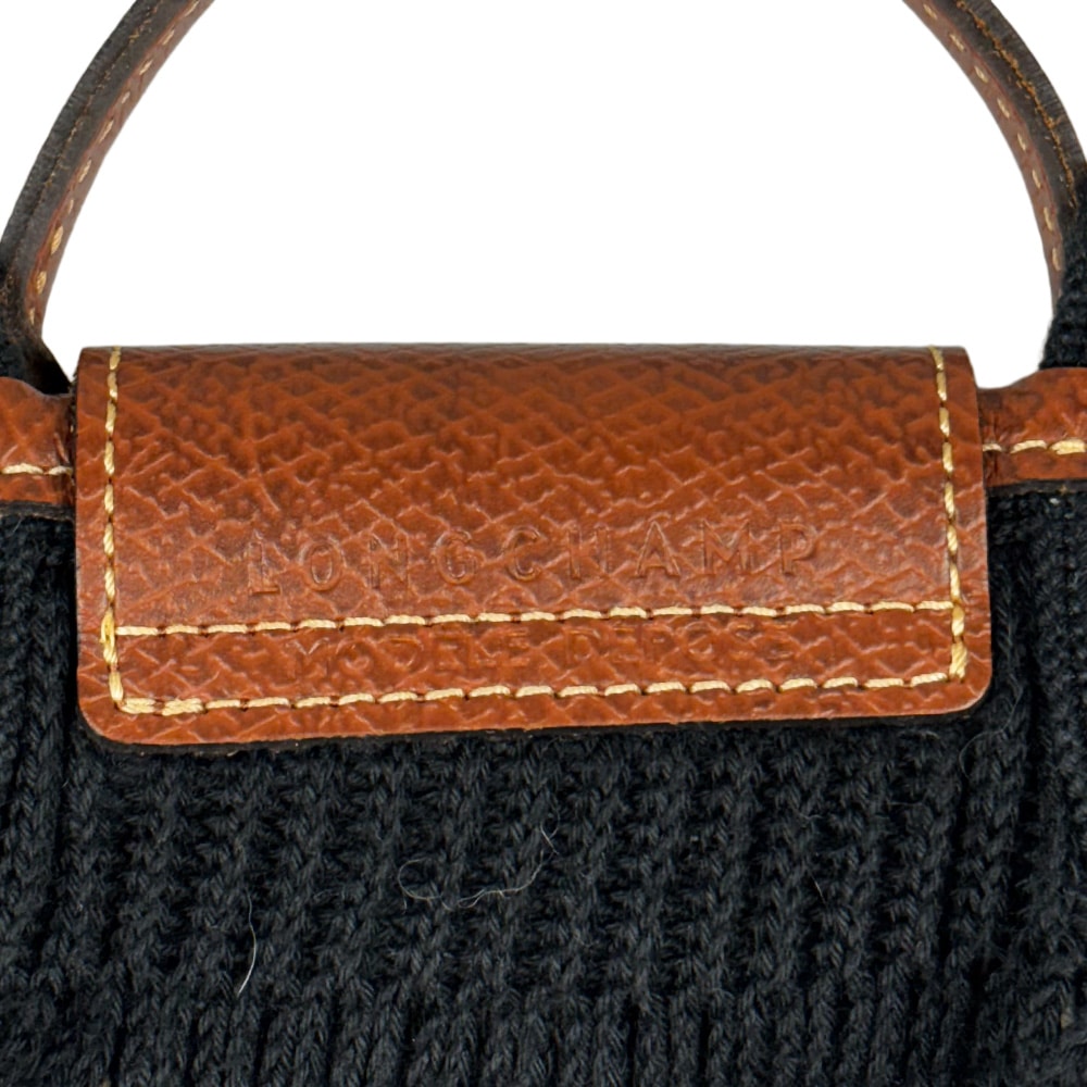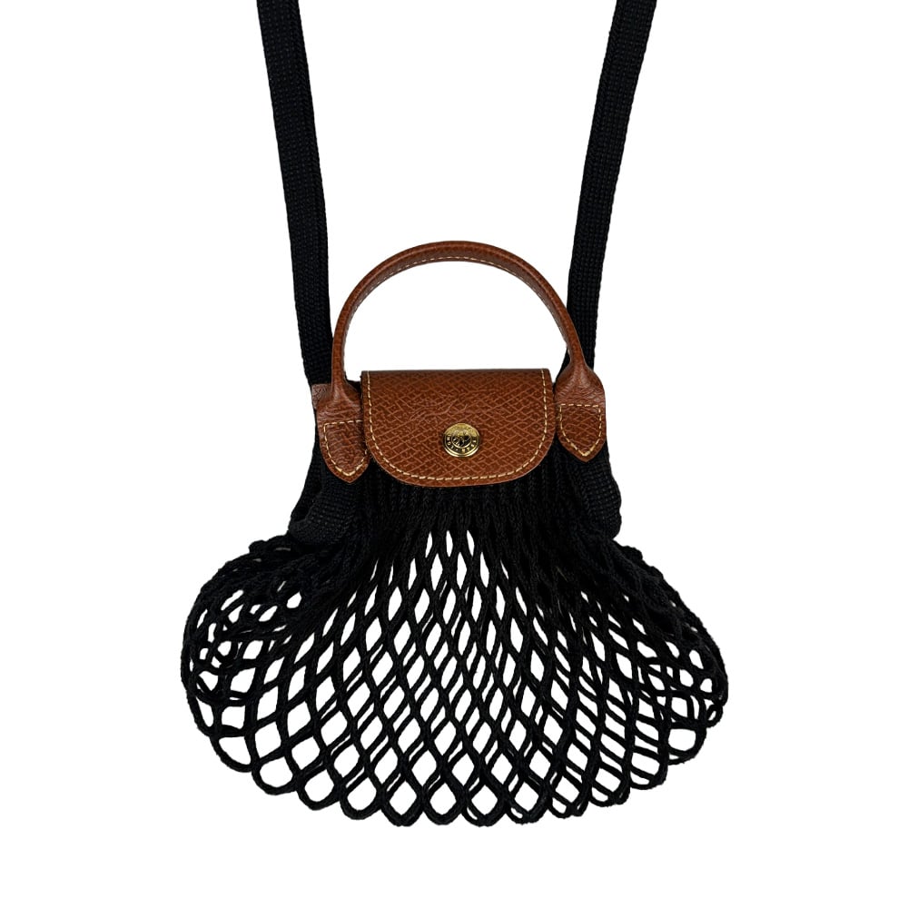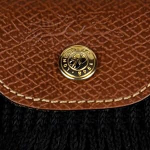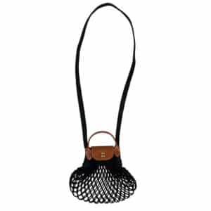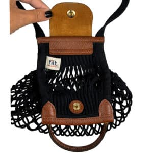- Crochê de algodão na cor preta e couro na cor marrom;