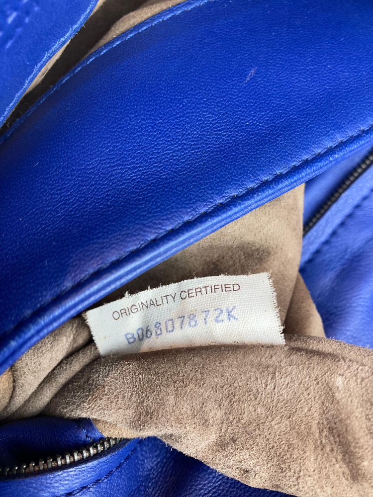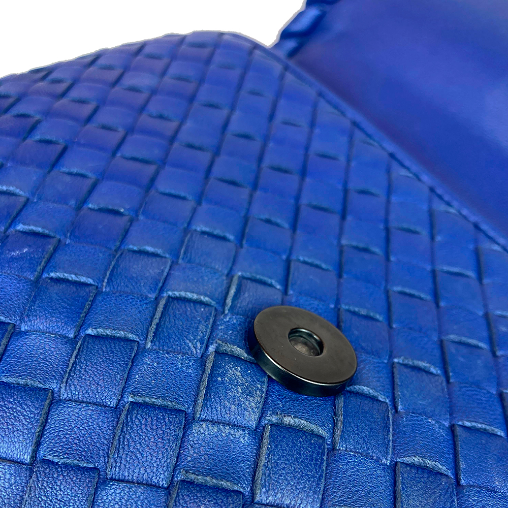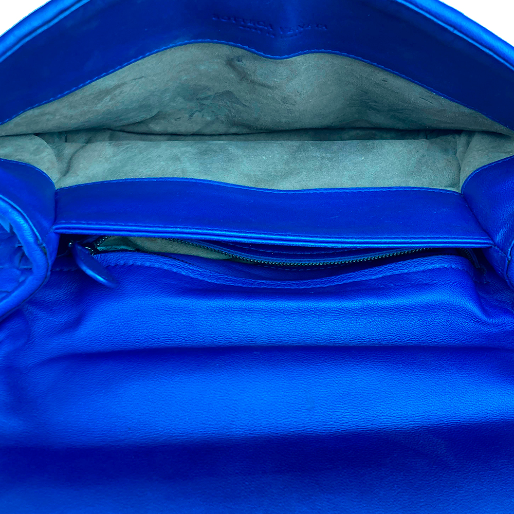 - Couro Nappa Intrecciato na cor Atlantic (azul);