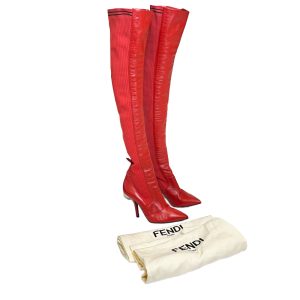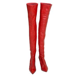 - Couro calfskin e tecido elástico estilo Rockoko na cor vermelha;