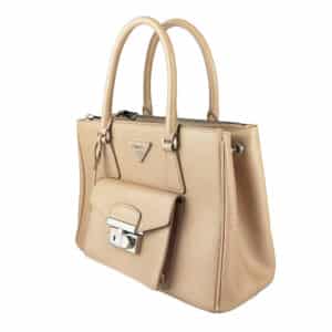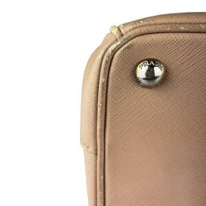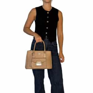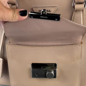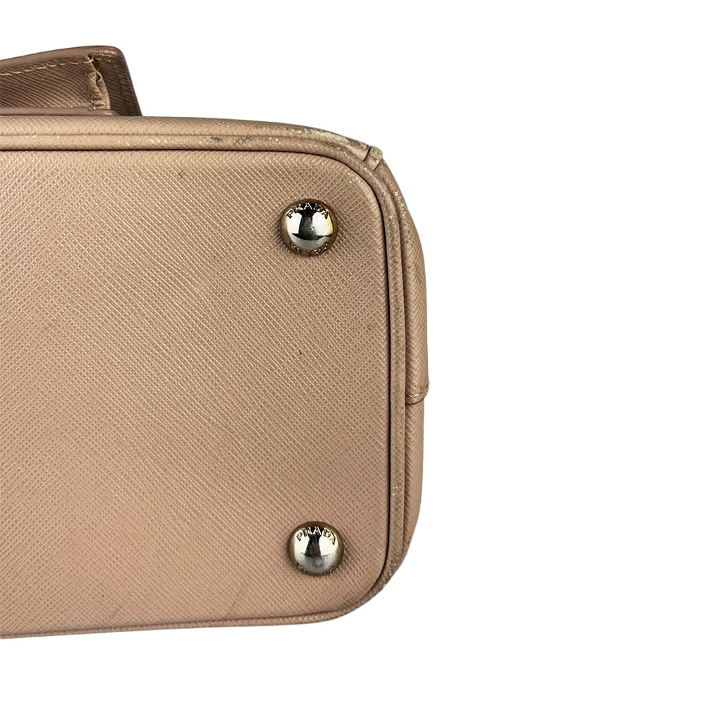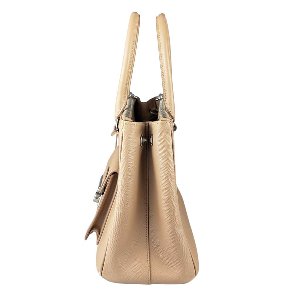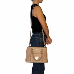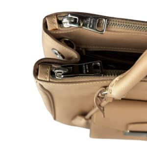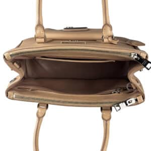 - Couro Saffiano na cor Cammeo (nude/caramelo);