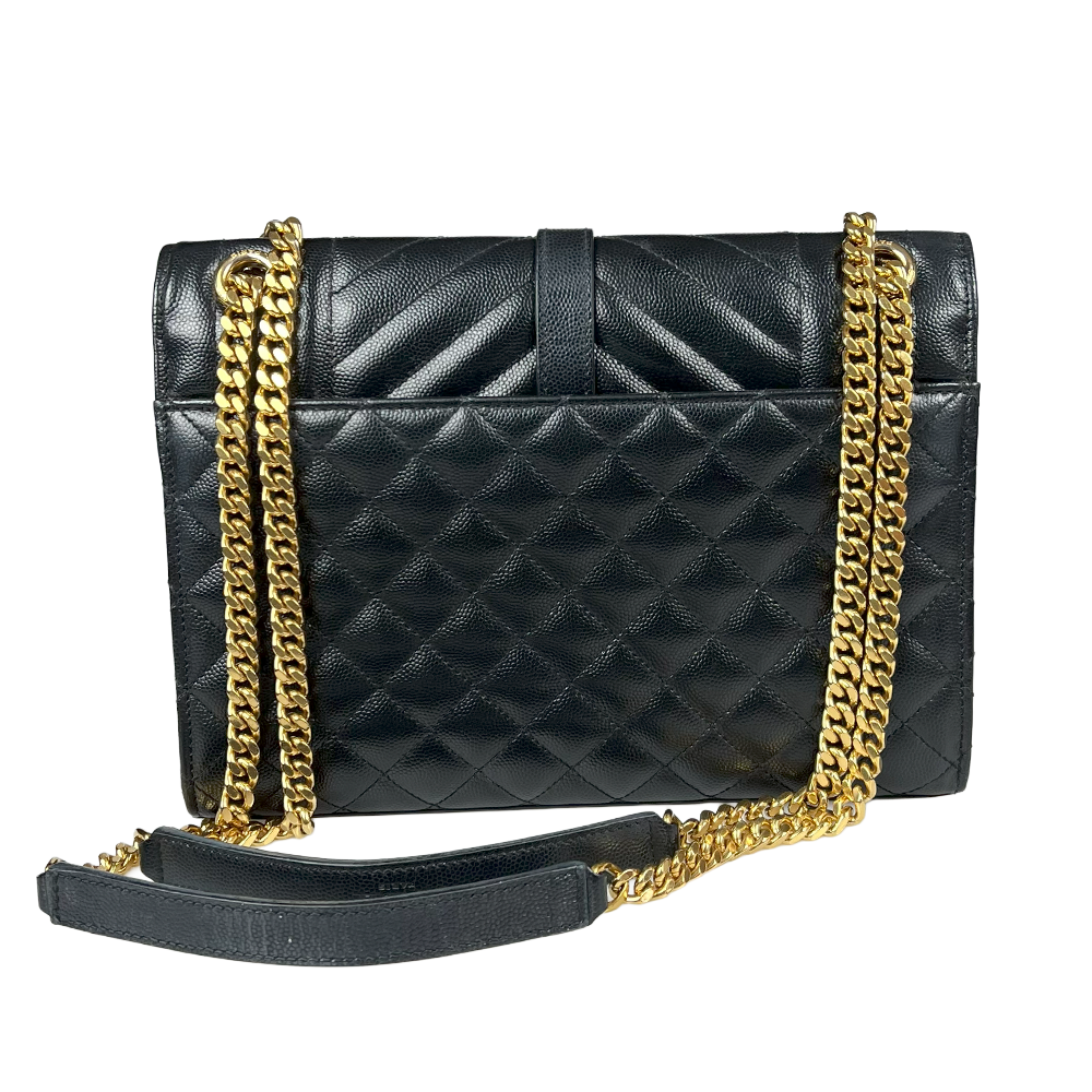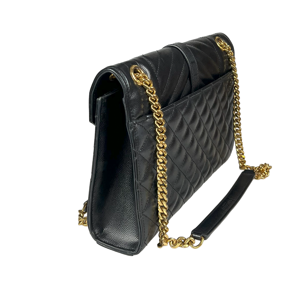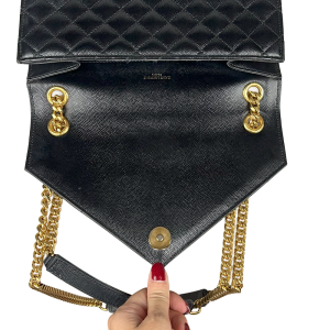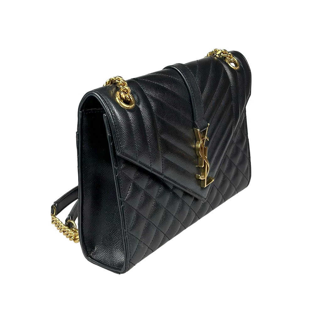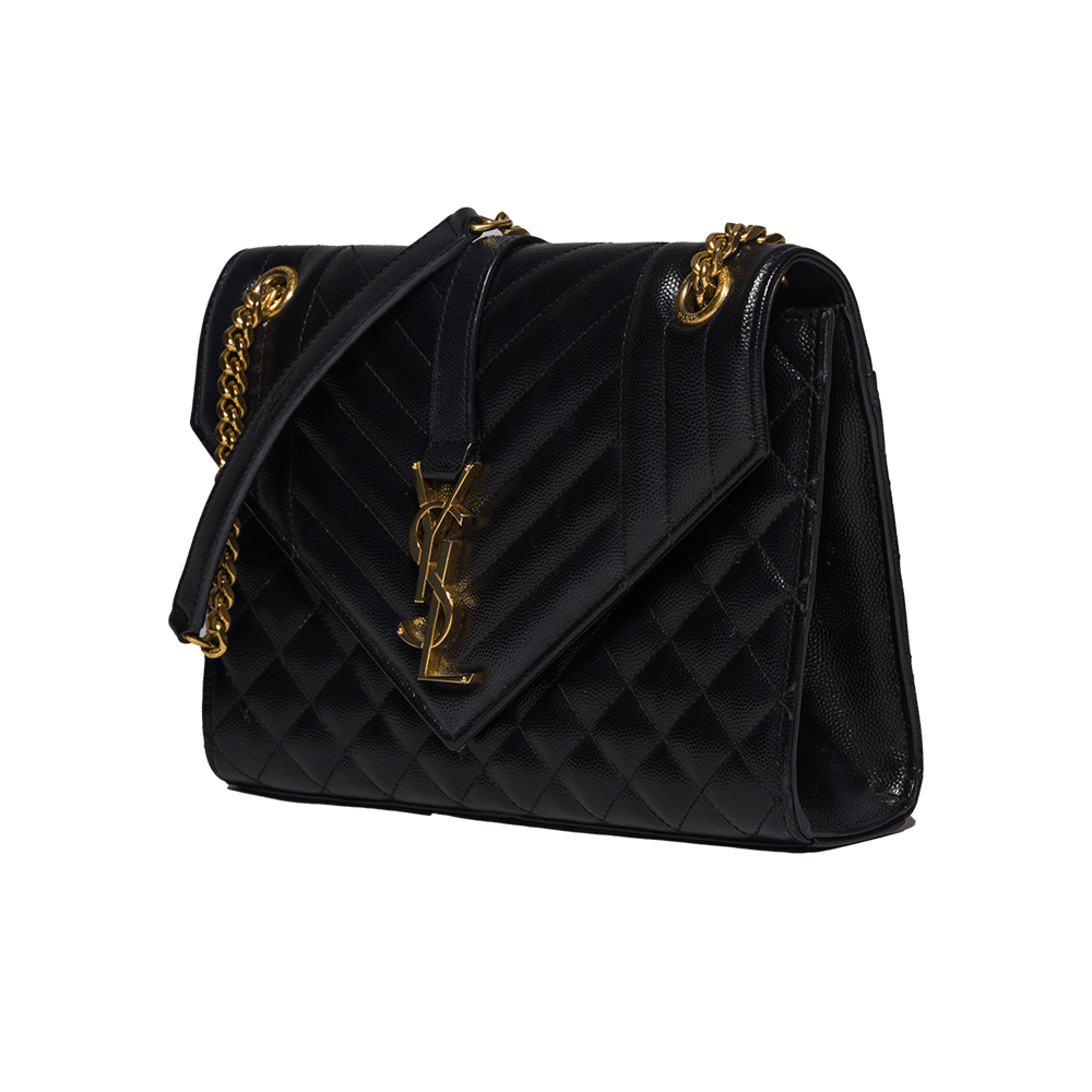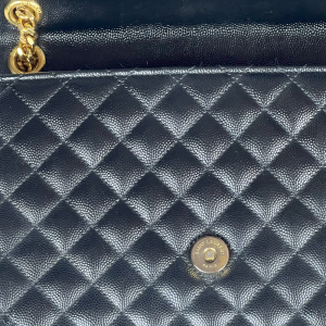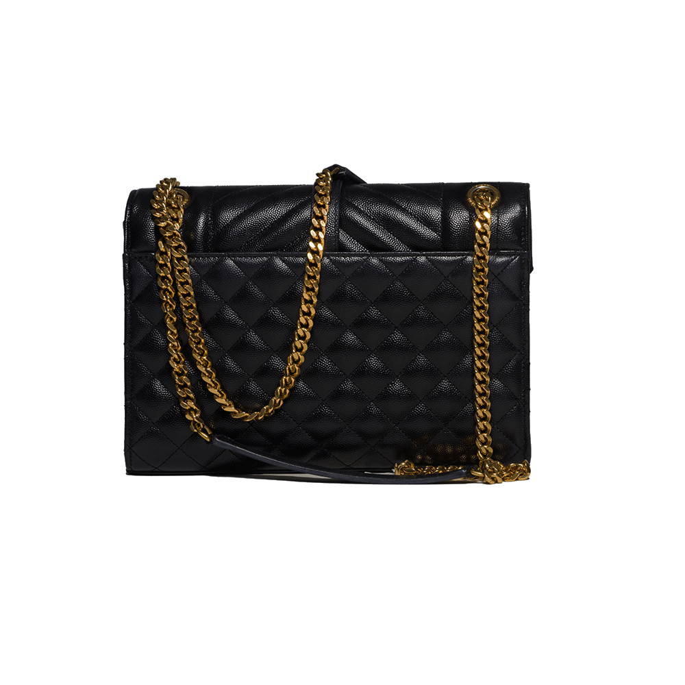 - Couro calfskin Triquilt Embossed Grain de Poudre na cor Noir (preta);