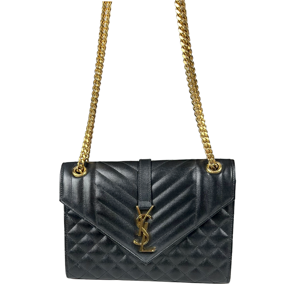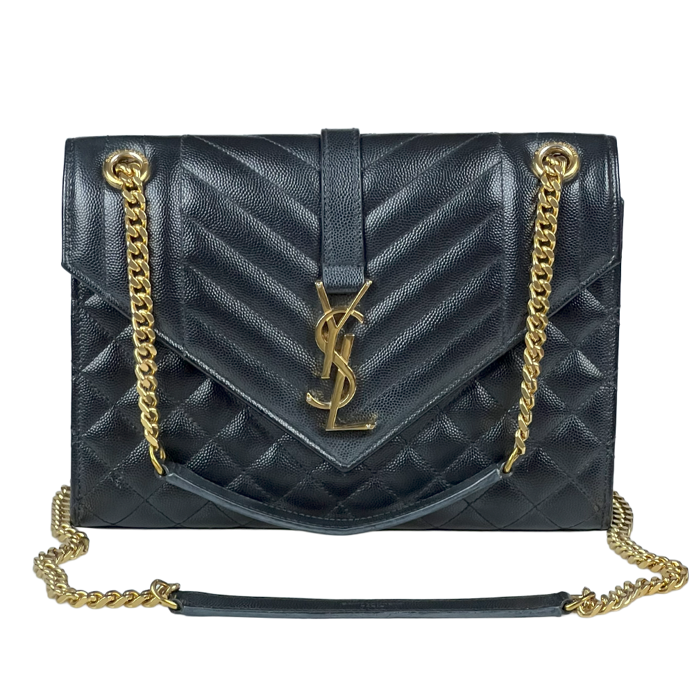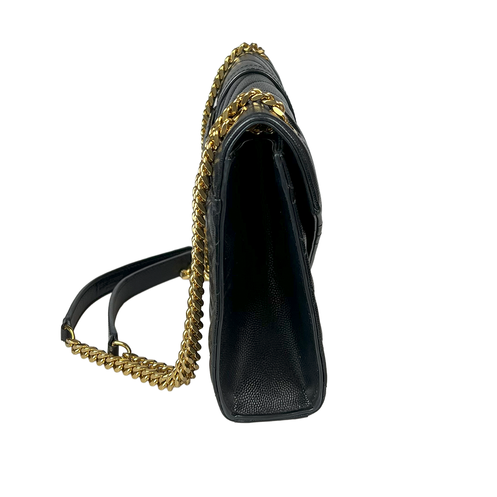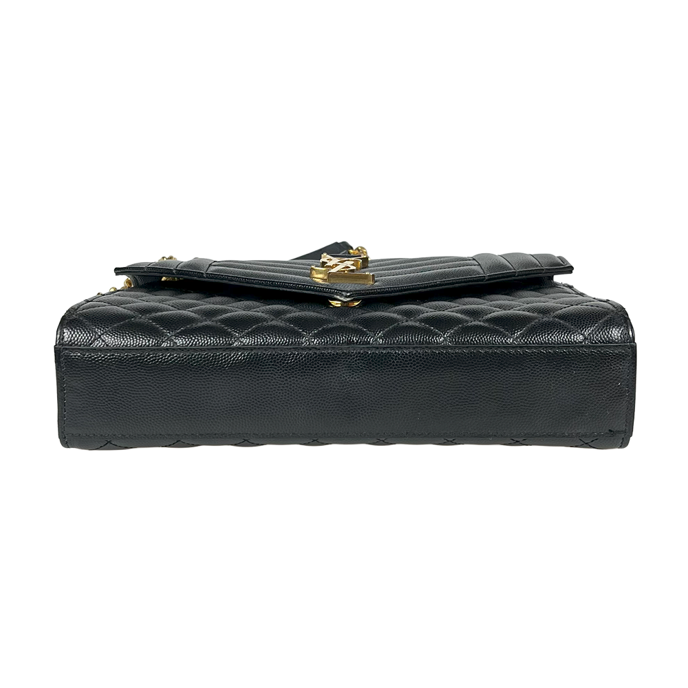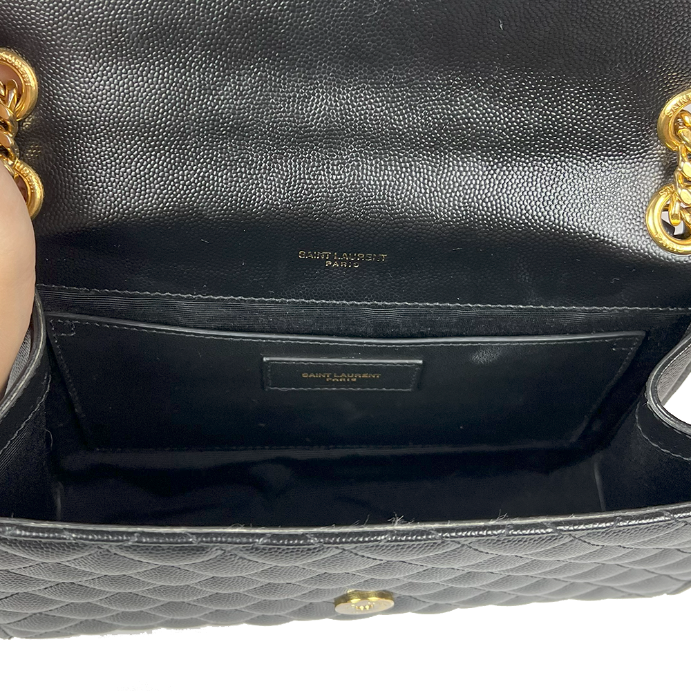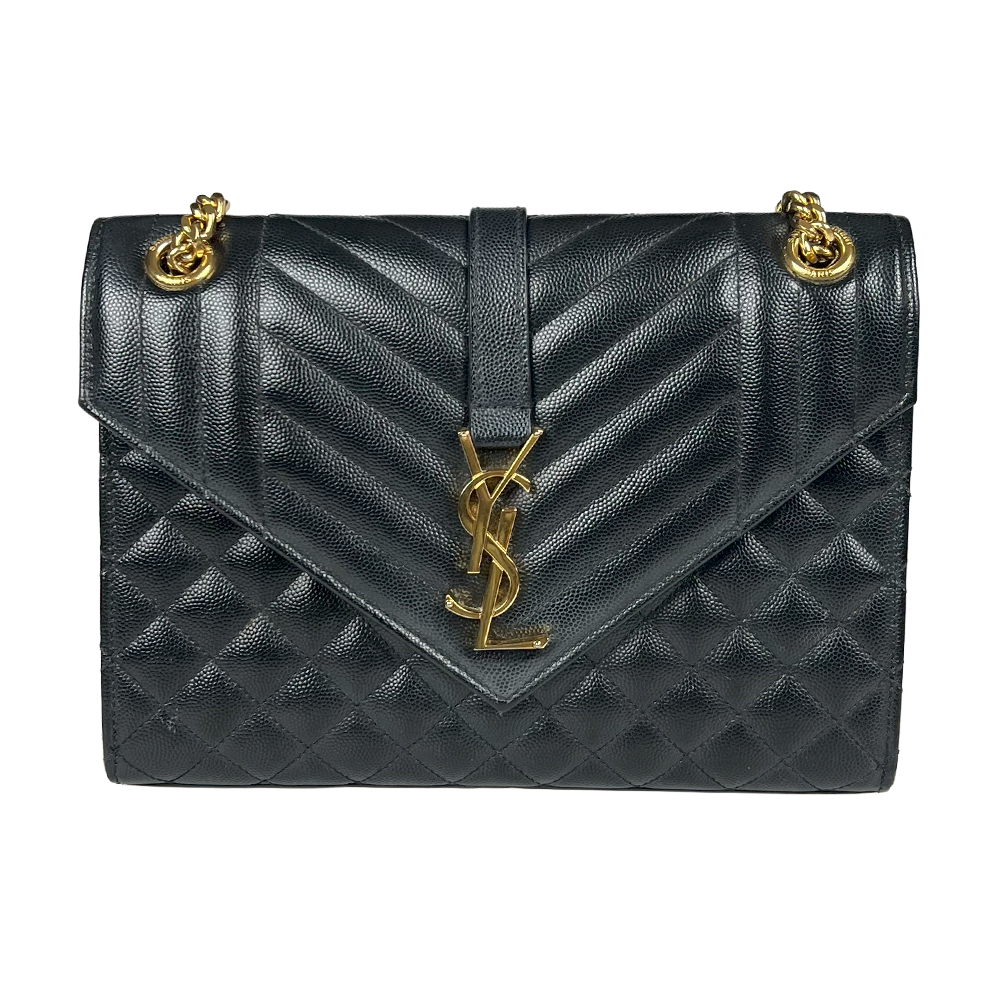 - Couro calfskin Triquilt Embossed Grain de Poudre na cor Noir (preta);
