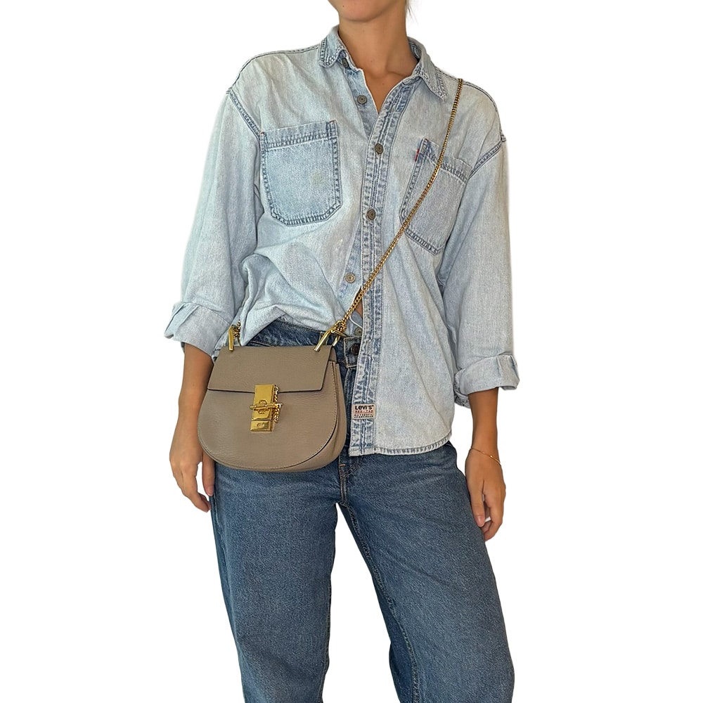 - Fechamento por flap e detalhe de fivela de encaixe;