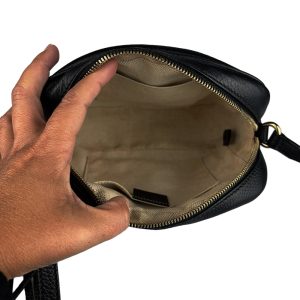 - Compartimento único, com dois bolsos internos sem fechamento;