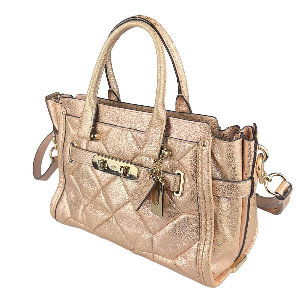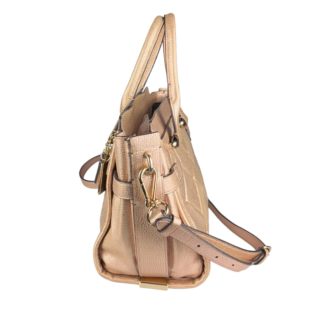 • Couro granulado na cor rosè gold (metalizado rosê);