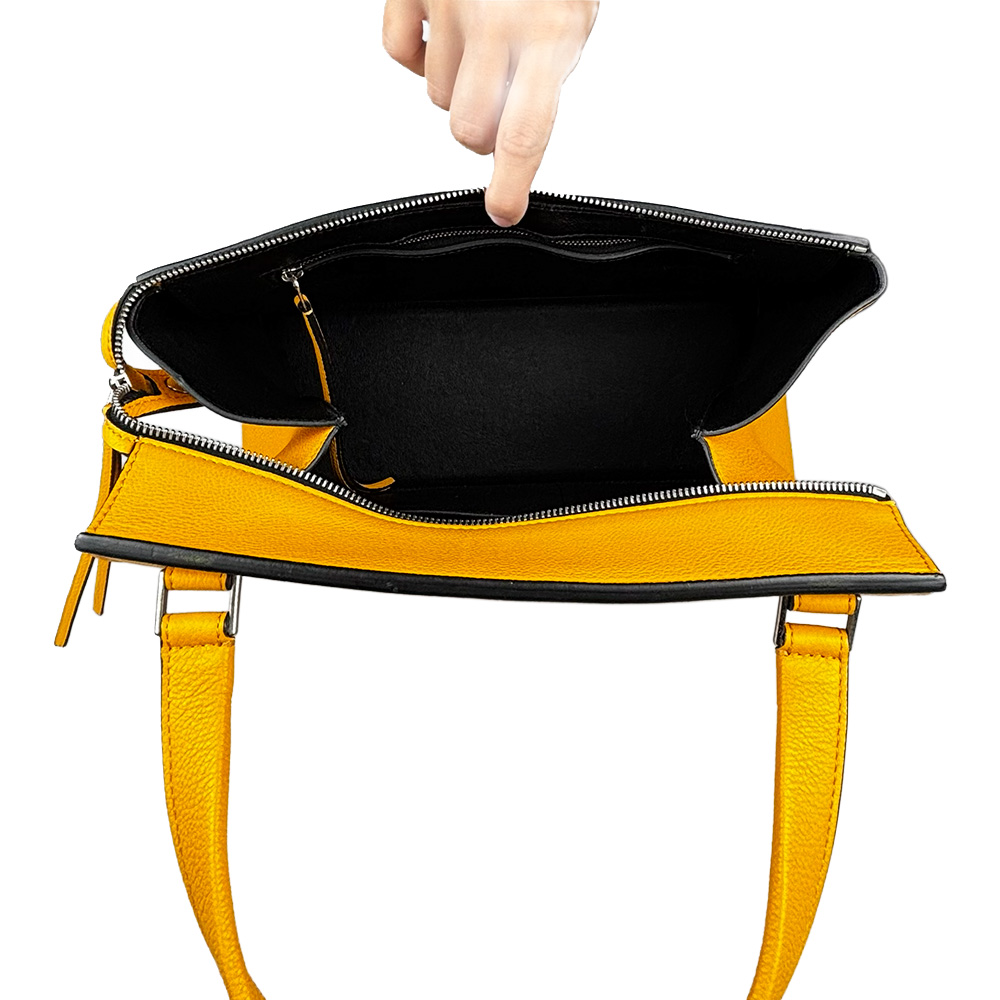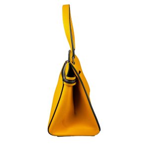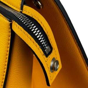 - Couro calfskin texturizado na cor amarela;