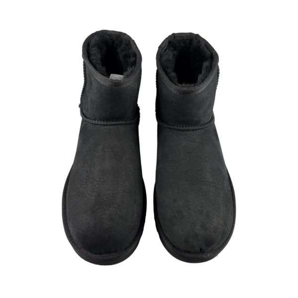 - Couro e pele de carneiro na cor preta. Sola em 100% EVA;