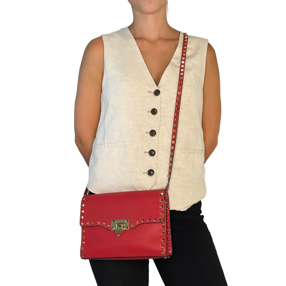 - Alça longa ajustável em couro Grainy Calfskin na cor vermelha;