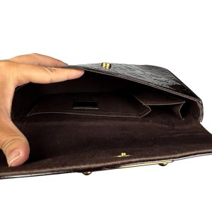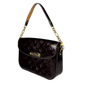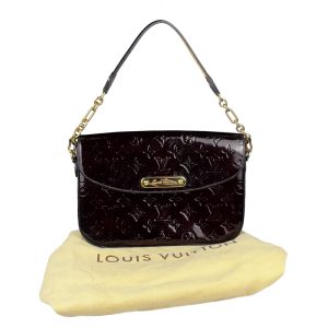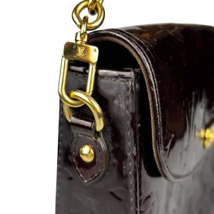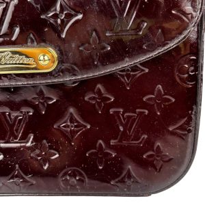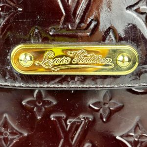 - Vernis (couro envernizado com padronagem Monogram em baixo relevo) na cor Amarante (vinho);