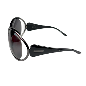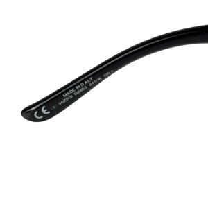 - Acetato na cor preta, com detalhes em metal na cor grafite;