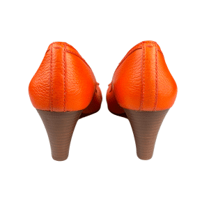 – Couro granulado na cor laranja;